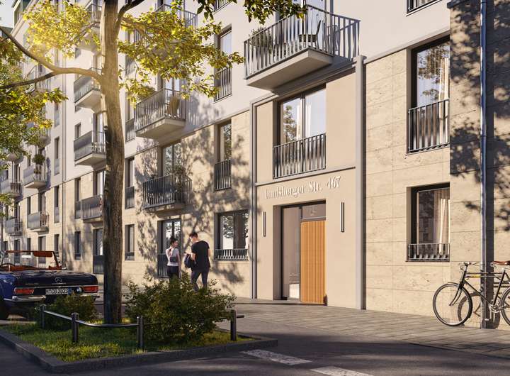 Das Wohnensemble liegt zwischen der Landsberger Straße und der Bodenstedtstraße. Der sich durch die beiden Gebäude ergebende Freiraum wird liebevoll begrünt – viele Terrassen und Balkone sind zum Innenhof hin ausgerichtet und versprechen ruhige Sommerabende und entspannte Wochenenden.