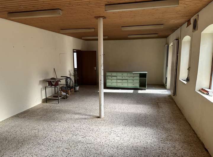 Bereich wurde früher als Gewerbefläche + Aufenthaltsraum und Abstellräume genutzt der durch einen weiteren Eingang über eine Treppe zu erreichen ist, mit kleinem Vorgarten. Diese Räumlichkeiten lassen sich je nach Bedarf optimal umfunktionieren und bieten Ihnen vielseitige Nutzungsmöglichkeiten ob als Werkstatt, Büro oder Einliegerwohnung u.v.m.