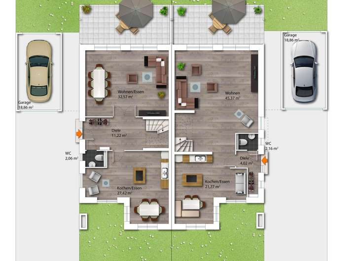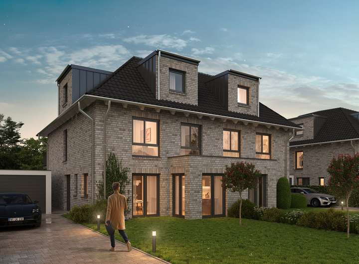 Walmdaches. Gehüllt in wertigen Klinkersteinfassaden, Gauben und anthrazitfarbenen Tür- und Fensteranlagen – teils bodentief – kommt das Haus bereits im