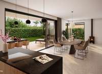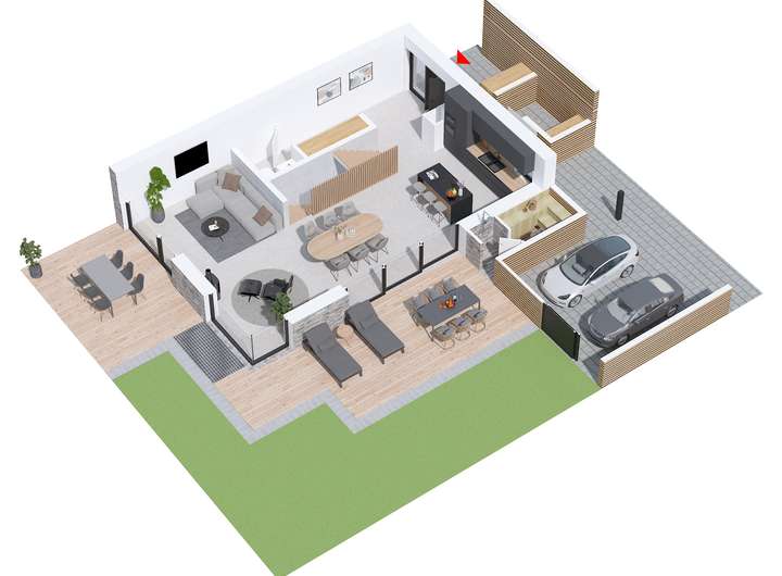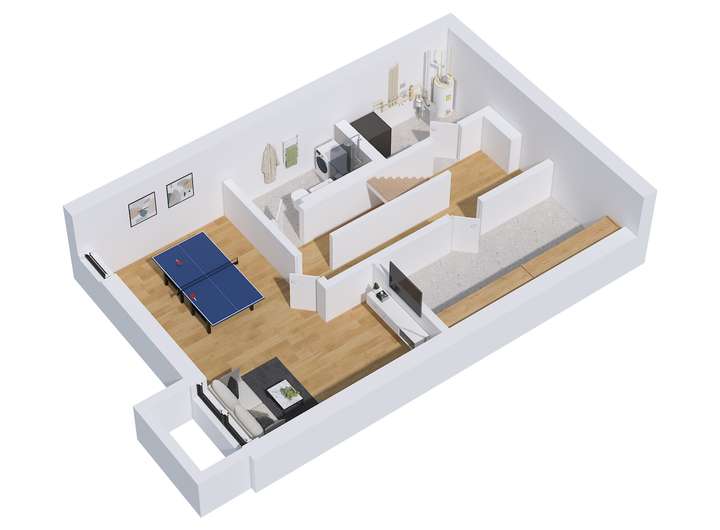 Durch wohl dosierte Vor- und Rücksprünge in der Fassade sowie durchdachte Grundrisse werden feine, gut proportionierte Räume im Innen- und Außenbereich geschaffen mit einem Maximum an Privatsphäre. Die Lage der verschiedenen Räume und Sitzbereiche ist perfekt abgestimmt auf Sonnen- und Lichteinfall. So erwacht man morgens mit Morgensonne im Schlafbereich mit vorgelagerter Dachterrasse, kann mittags / nachmittags die geschützte Südterrasse mit Garten voll auskosten und abends auf der West-Terrasse die Abendsonne genießen. Die Sauna mit Außendusche liegt im überdachten Außenbereich geschützt vor Einblicken mit direktem Zugang zum Wohnbereich. Vom Carport gibt es einen direkten Zugang zum privaten uneinsichtigen Garten. Ein Hobbyraum im Keller rundet das großzügige Raumangebot ab.