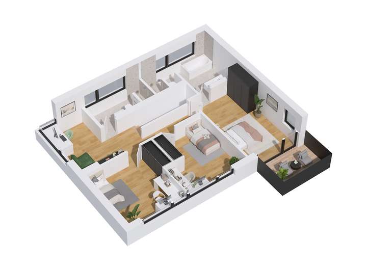 - großzügige Terrassen (Süd und West) + Dachterrasse (Süd-Ost)