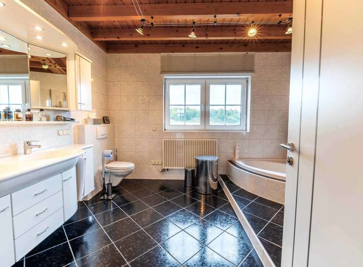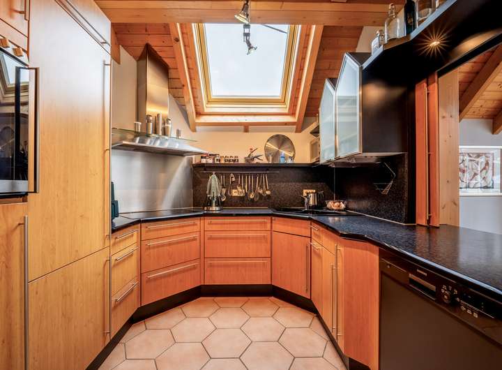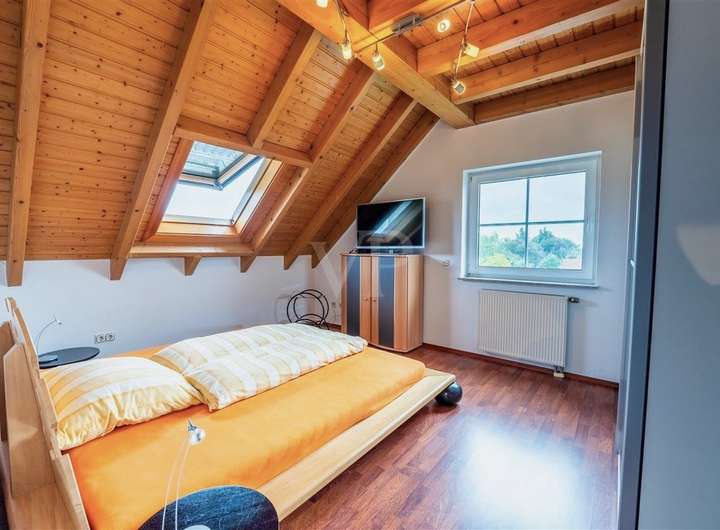 Details: Hochwertige Einbauküche, elektrische Rollläden, begehbarer Kleiderschrank, Decken bis zum Giebel geöffnet, Waschmaschinen- Anschluss in der Wohnung, etc.