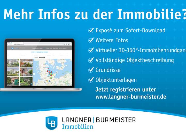 Einfach auf unserer Internetseite www.langner-burmeister.de unter "Mein Konto" anmelden und das Exposé inkl. Adresse direkt selber herunterladen.