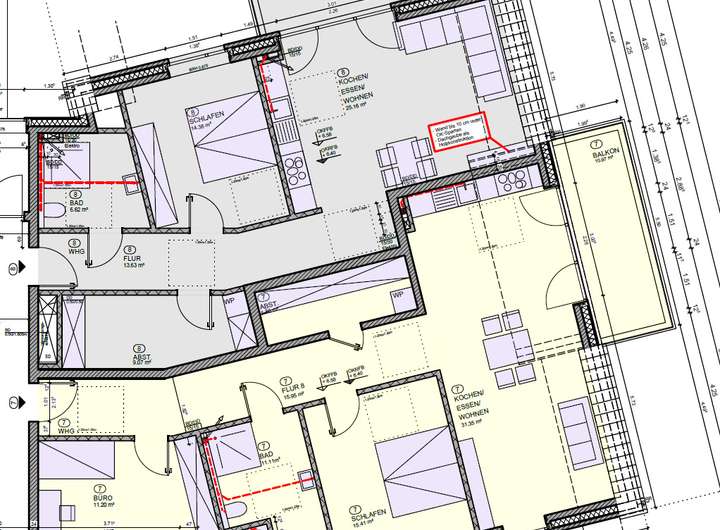 - Dezentrale Lüftungsanlage: Jede Wohnung ist mit einer eigenen Lüftungsanlage ausgestattet, die zusammen mit der Wärmepumpe für ein gesundes Raumklima sorgt.