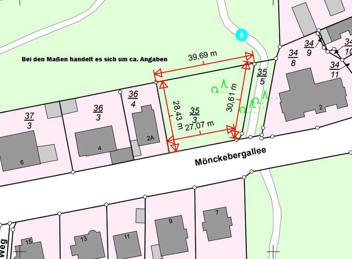 - Bebauung nach § 34 BauBG; Nachbarbebauung: 2-geschossig mit Dachgeschoss