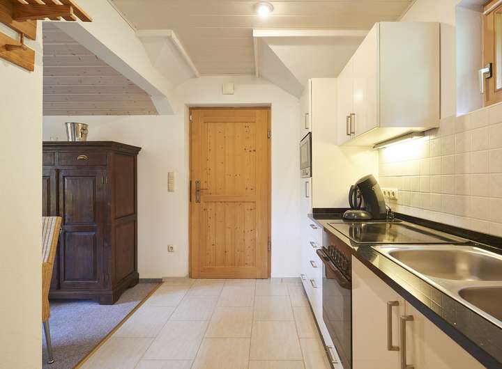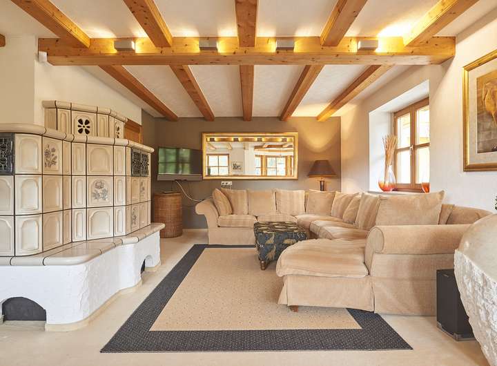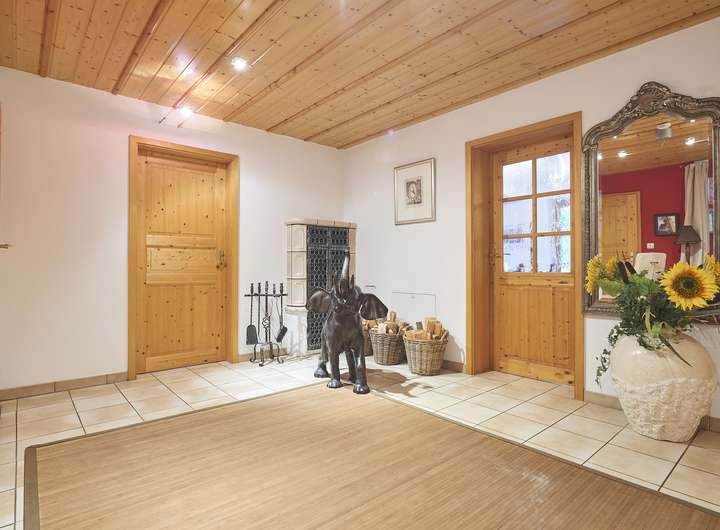 Der 2024 neu eingebaute Kachelofeneinsatz versorgt das gesamte Haus zuverlässig mit Wärme und übernimmt gleichzeitig die Warmwasseraufbereitung. Ergänzt wird dieser Komfort durch einen modernen Pufferspeicher, der ebenfalls 2024 eingebaut wurde.