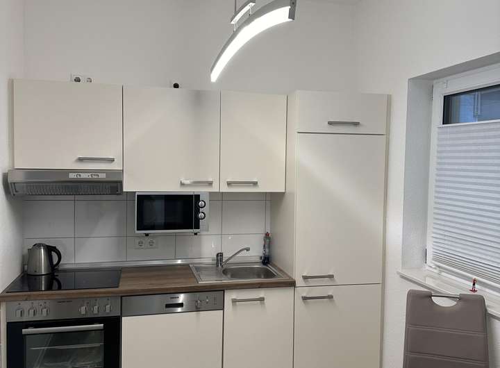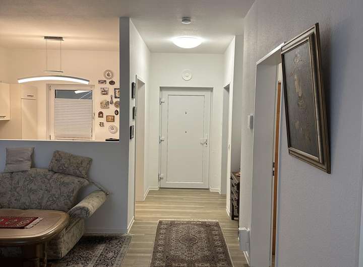 Die Wohnung besteht aus zwei Zimmern, einer Terrasse, einer integrierten Einbauküche, einer Diele, sowie einem Bad und einem Abstellraum. Die Einbauküche ist je Wohnung integriert.