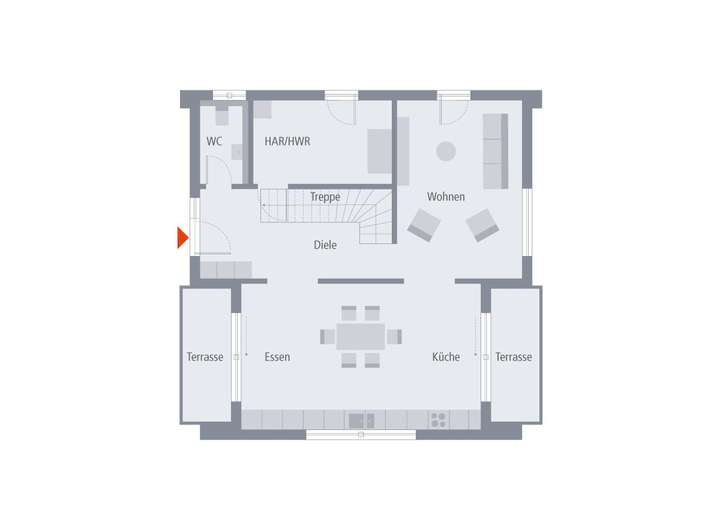 Dieser Architektenentwurf ist ein Planungsvorschlag und dient der Inspiration und Orientierung. Grundrisse, Architektur-Extras, Ausbau- und Effizienzhaus-Stufen werden individuell an Ihre Wünsche und Bedürfnisse angepasst.