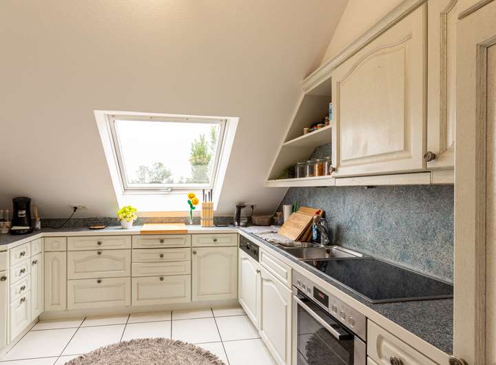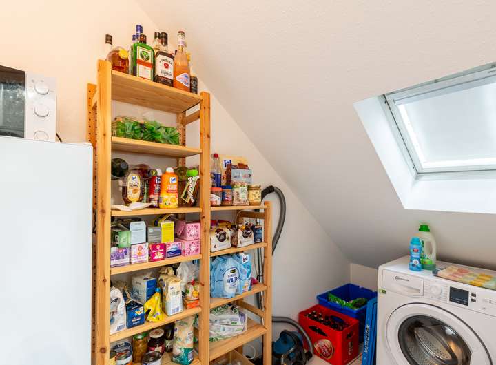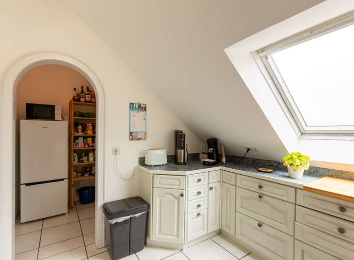 Die gut geschnittene Küche kann gerne in der Wohnung verbleiben und verfügt über einen praktischen, angrenzenden Abstellraum, in dem auch Ihre Waschmaschine aufgestellt werden kann.