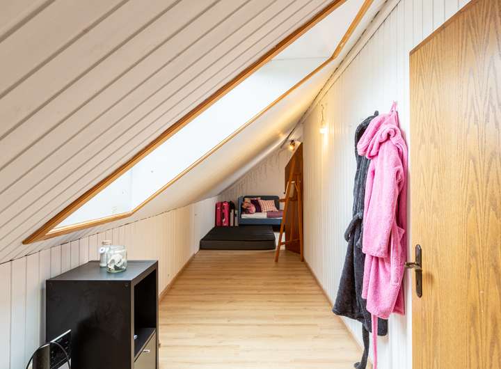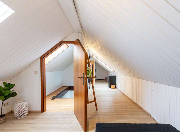 Über die eindrucksvolle, mit Liebe zum Detail gearbeitete Treppe gelangen Sie zu guter Letzt in den ausgebauten Spitzboden.
