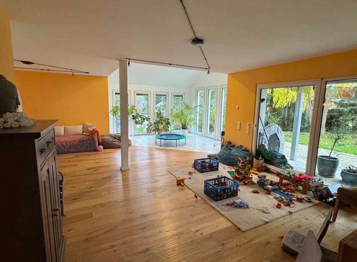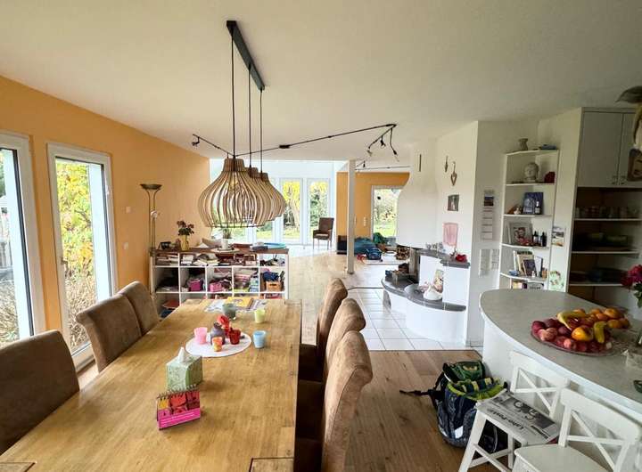 Das Haus liegt am Ende einer ruhigen Straße in einer gepflegten Einfamilienhausgegend und schenkt Ihnen Privatsphäre und Geborgenheit. Der offene Wohn- und Essbereich mit integriertem Wintergarten bildet das Herzstück des Hauses: Durch große Fensterfronten fällt reichlich Tageslicht, das die Räume erstrahlen lässt und den Blick auf den herrlich großen Garten freigibt. Ein gemütlicher Kamin sorgt für warme Stunden, während die angrenzende Einbauküche den Mittelpunkt des Familienlebens abrundet. Zwei Balkone bieten ideale Rückzugsorte.