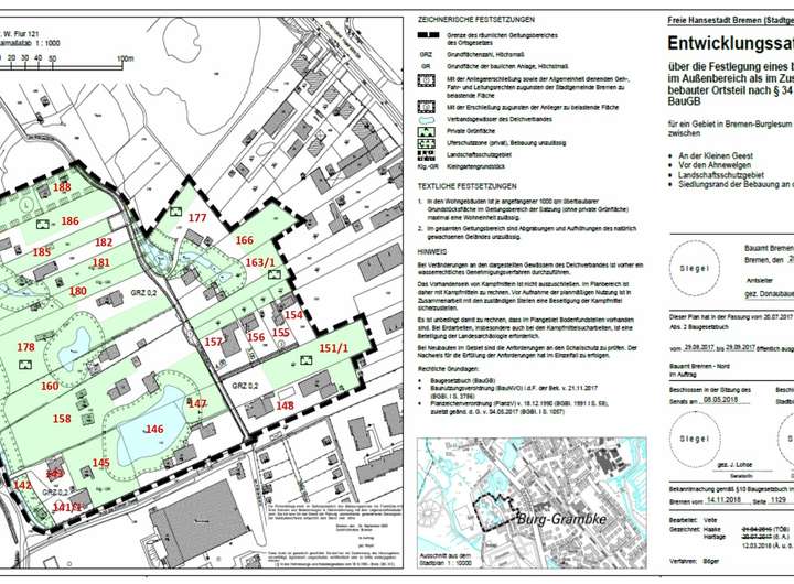 Dieses 600 m² große Grundstück ( 478 m² Bauland und 124m² Grünland) befindet sich in einer grünen und begehrten Lage von Grambke, unmittelbar angrenzend an das Landschaftsschutzgebiet und dem Sportparksee. Die idyllische Umgebung bietet eine perfekte Balance aus Natur und Erholung, kombiniert mit der Möglichkeit, Ihr Traumhaus zu verwirklichen.