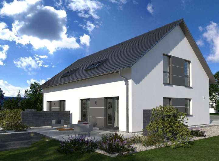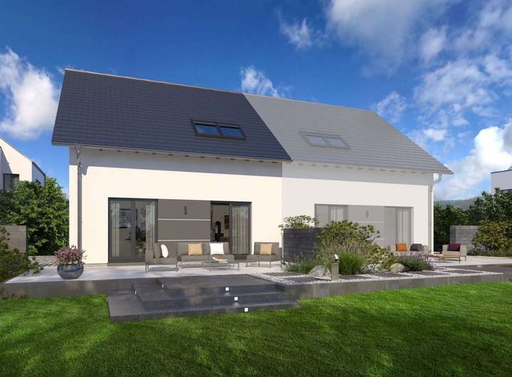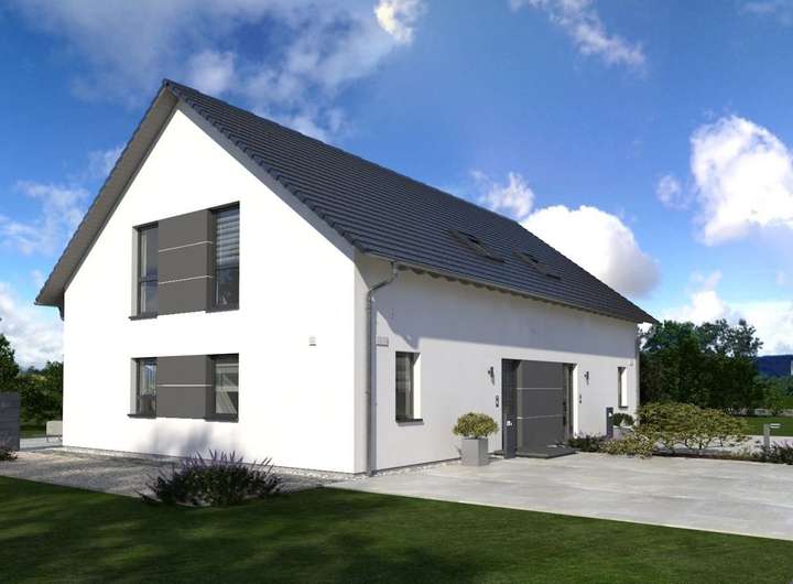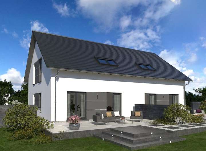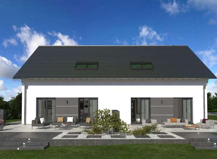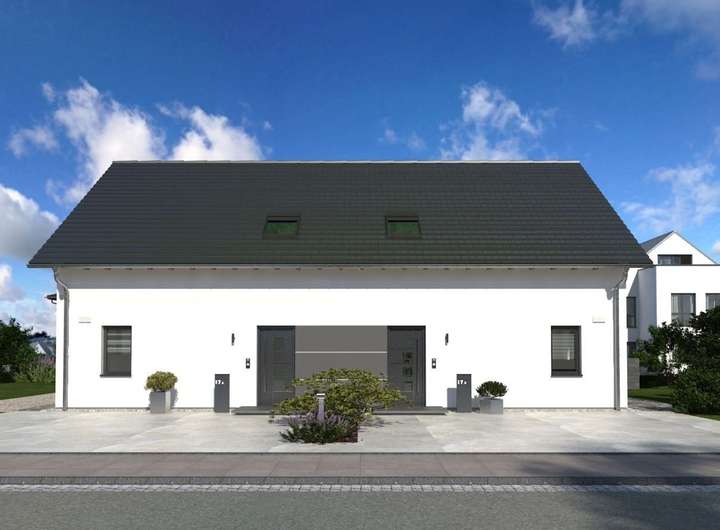 Zeitlos-elegant und durchdacht bis ins kleinste Detail, das ist unser Doppelhaus 10. Hier stehen Baufamilien zwei identische Wohneinheiten zur Verfügung. Diese erstrecken sich über jeweils zwei Etagen und verfügen über eine Wohnfläche von rund 142 m2. Im Erdgeschoss sorgt ein praktischer Windfang dafür, dass keine Zugluft durch die Haustür in die Wohnräume gerät. Hier ist der perfekte Ort für Garderobe und Schuhregal. Durch die Diele geht es weiter in den Wohn-Ess-Bereich mit integrierter Küchenzeile. Der knapp 40 m² große Raum ist der perfekte Treffpunkt für die ganze Familie. Von hier ist auch ein Zugang zum Garten möglich. Im Erdgeschoss befinden sich zudem ein Hausanschlussraum sowie ein Gäste-WC. Das Obergeschoss ist in vier Räume unterteilt: ein Elternschlafzimmer, zwei Kinderzimmer sowie ein Bad. Das Satteldach und die damit verbundenen Dachschrägen sorgen für eine angenehme Gemütlichkeit und bieten dank einer Stockhöhe von 1 m noch ausreichend Raum, um Sideboard und Co. zu stellen.