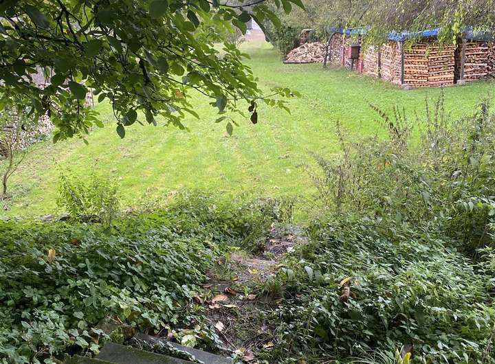 Hinter der Scheune eröffnet sich eine beeindruckende Gartenfläche, die viel Platz für Gartenprojekte und Freizeitgestaltung. Vielleicht ist hier zusätzlich auch noch eine Bebauung möglich. Das Grundstück erstreckt sich bis zur Wiesenstraße und schafft eine Verbindung von ländlicher Idylle zur praktischen Erreichbarkeit.