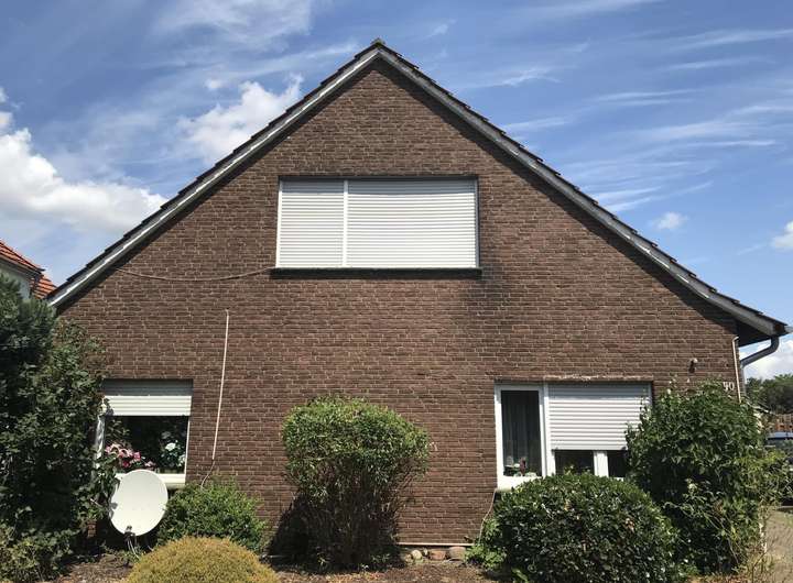 Durch die vorhandene Einliegerwohnung ergeben sich vielfältige Nutzungsmöglichkeiten. So eignet sich diese Immobilie u. a. ideal zur Eigennutzung als Mehrgenerationenhaus oder zur Vermietung. Die Wohnfläche beträgt insgesamt ca. 156 m². Im Erdgeschoss verteilen sich ca. 88 m² auf drei Zimmer, Küche, HWR, Bad sowie Diele und Windfang. Die Einliegerwohnung verfügt über drei Zimmer, Küche, Bad/WC sowie Flur und ist ca. 68 m² groß.