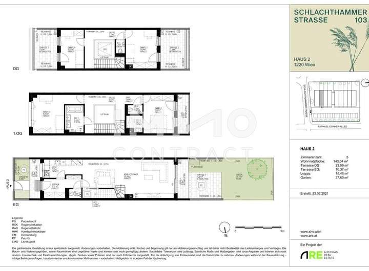 Ideales Familienparadies oder für Menschen mit Platzbedarf! Die Reihenhäuser sind funktional strukturiert, offen angelegt, mit hochwertigen Materialien ausgestattet und haben Wohnnutzflächen von ca. 143 m2. Die dreistöckigen Häuser haben in den beiden Obergeschoßen 4 Schlafzimmer und im Erdgeschoß den Bereich für Kochen, Essen und Wohnen. In jedem der drei Stockwerke gibt es Freiflächen – zwei Loggien, drei Terrassen, einen Eigengarten und einen Vorgarten. Schlüsselfertige Ausführung, unglaublich hell durch wunderschöne Glasfronten die die Natur mit dem Inneren verschmelzen lassen. Ein PKW-Abstellplatz ist im Preis inkludiert!