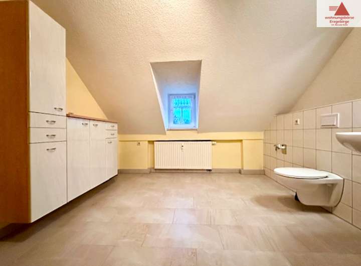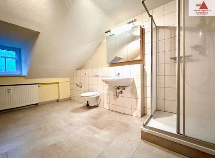 Modernes Tageslichtbad mit Dusche - Einbauküche - 3-Raum-Wohnung in Schlettau im Dachgeschoss!