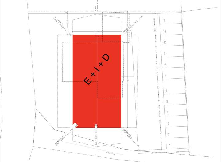 Als Neubau sind vier Reihenhäuser, oder auch ein großes Mehrfamilienhaus denkbar. Eine grobe Vorplanung für ein Mehrfamilienhaus liegt vor, wobei hierbei die Grundstücksgröße bewusst nicht voll ausgenutzt wurde. Die Abstandsflächen lassen eine größere Bebauung zu.