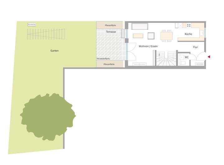 Ein besonderes Augenmerk verdient die Terrasse mit angrenzendem Garten, welcher vom Wohnbereich zugänglich ist und nicht nur in der warmen Jahreszeit einen wirklichen Mehrwert bietet. Hier ist ausreichend Platz für Kind und Kegel, den Hund oder einfach nur um Sonne zu tanken und sich zu entspannen. Die Ausrichtung ist genial, es ist Süd-West.