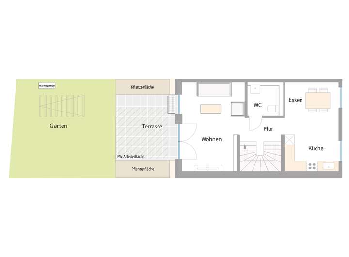 Ausgenommen der Gartenfläche ist der Grundriss des Reihenmittelhauses Nr. 17 identisch mit den Grundrissen der Reihenmittelhäuser Nr. 18, 21 und 22.