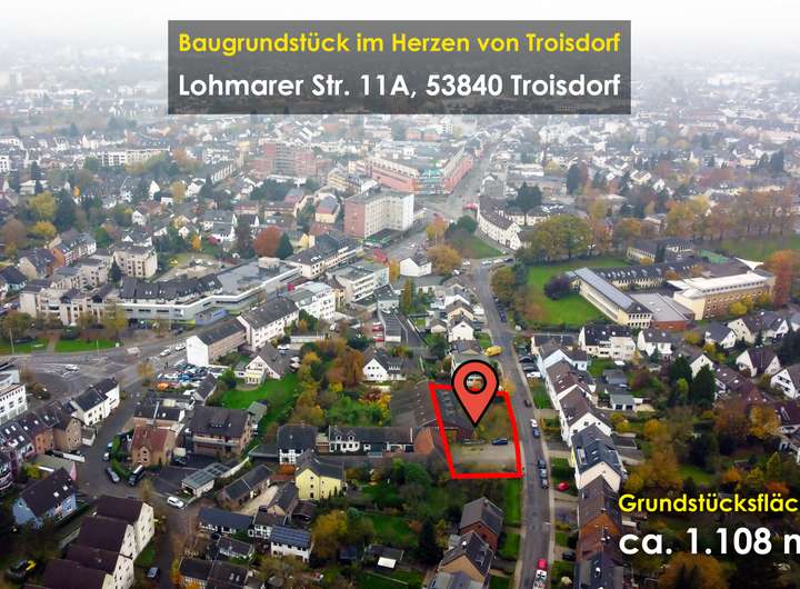 Das Grundstück an der Lohmarer Straße 11a / Am Pfuhl 28 befindet sich in einer erstklassigen Lage in 53840 Troisdorf-Mitte und bietet eine einzigartige Kombination aus städtischer Infrastruktur, hervorragender Anbindung und einem hohen Freizeitwert.