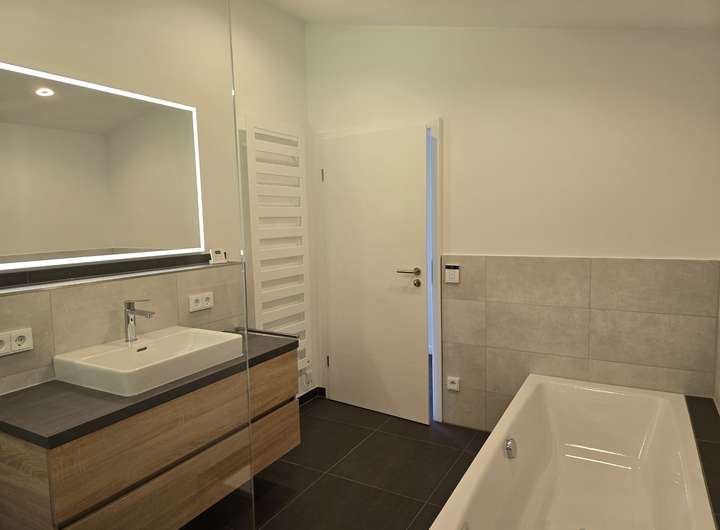 Fliesen, Fußbodenheizung, Lüftungsanlage, elektrische Rollläden, Video-Türsprechanlage, KNX Bus-System
