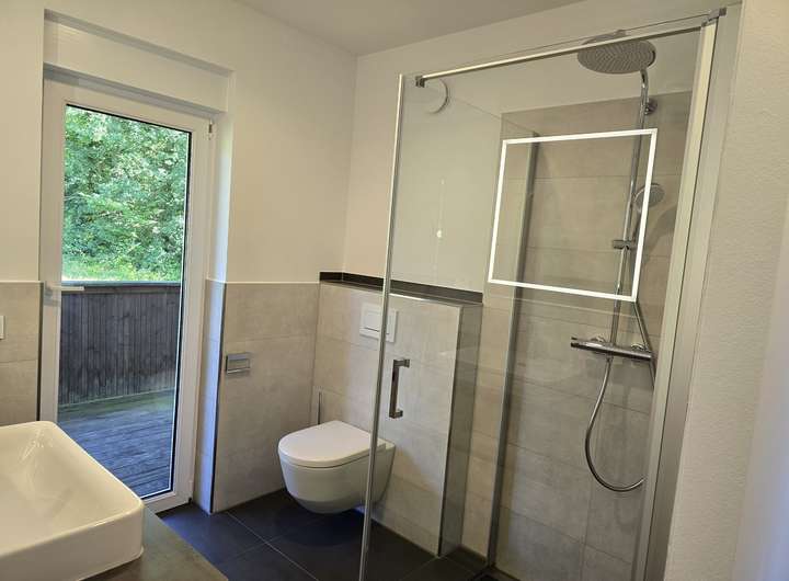 Die Wohnung verfügt über einen großzügigen Balkon in sonniger, ruhiger Lage am Waldrand – perfekt für entspannte Stunden im Grünen. Die moderne Ausstattung und neuen sanitären Einrichtungen bieten höchsten Wohnkomfort und sind ideal für alle, die Wert auf Qualität und Stil legen.