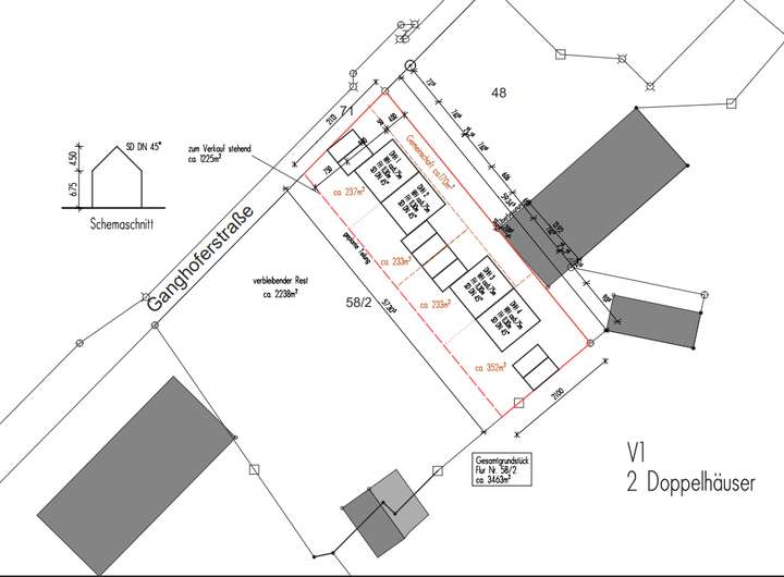 Mit einer großzügigen Fläche von ca. 1.239 m² bietet dieses Grundstück, welches auch in unterschiedlichen Parzellen (z.B. 2 x 600 m“ oder 3 x 400 m²) teilbar wäre , großzügig Platz für die Top-Realisierung Ihres Wohnparadieses in Form einer Villa, eines großen Doppelhauses, oder eines Einfamilienhauses.