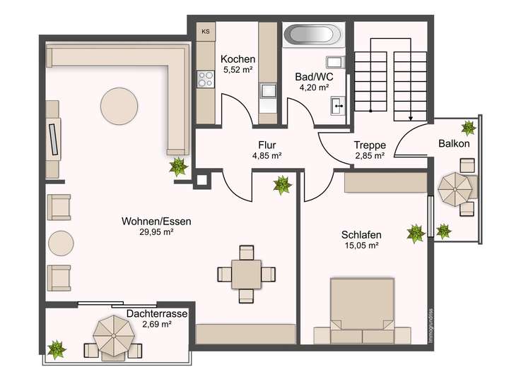 Wohnung DG = 2 ZKB = rd. 77 m² Wohnfläche