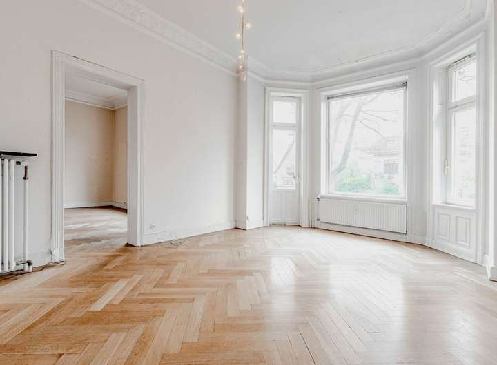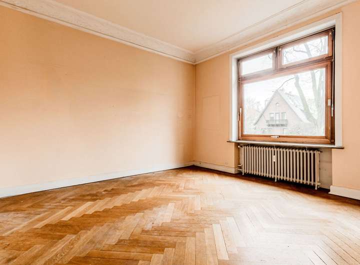 - Charakteristische Stuckelemente und Fischgrätparkett sorgen für ein gehobenes Wohngefühl