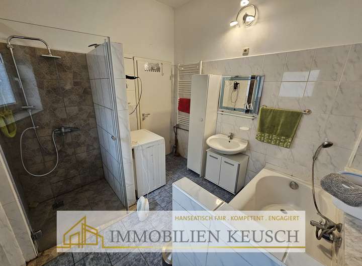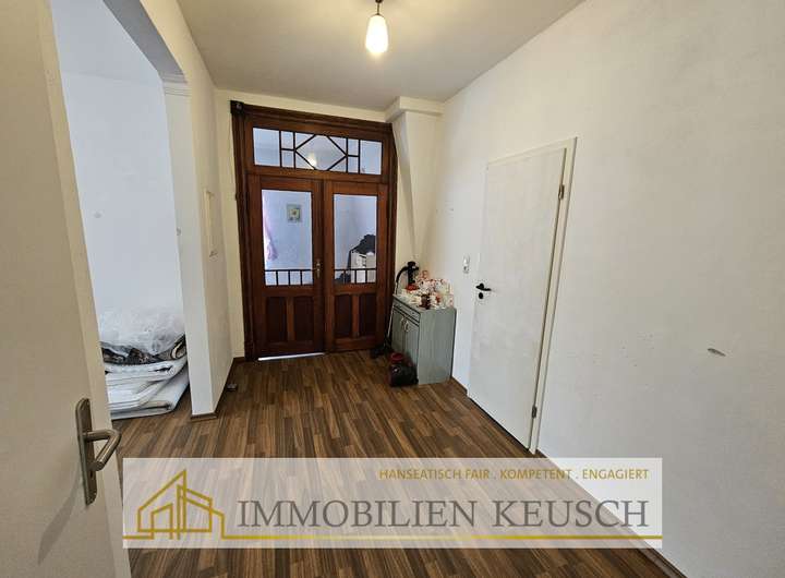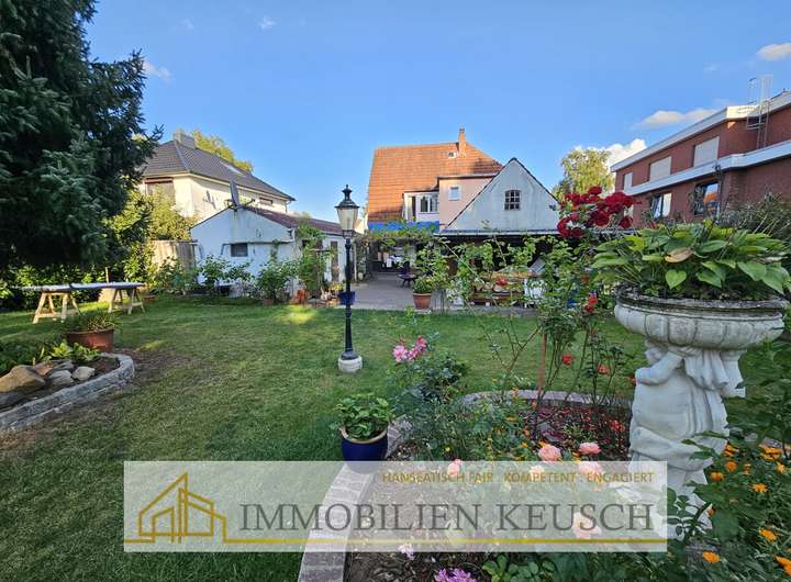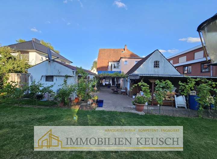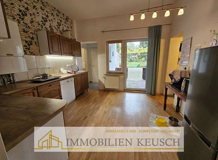 Diese 1912 erbaute Stadtvilla verfügt über zwei Etagen plus Dachgeschoss in ruhiger & begehrter Lage von Ritterhude und bietet Ihnen sehr viel Platz für die Familie sowie ein großes, grünes Grundstück. Im Erdgeschoss befinden sich ein großes Wohn- und Esszimmer mit Kaminofen, die Küche mit Sitzgelegenheit und Zugang zum Garten und der überdachten Terrasse, ein geräumiges Schlafzimmer, ein Dusch- und Wannenbad und ein Gäste WC.