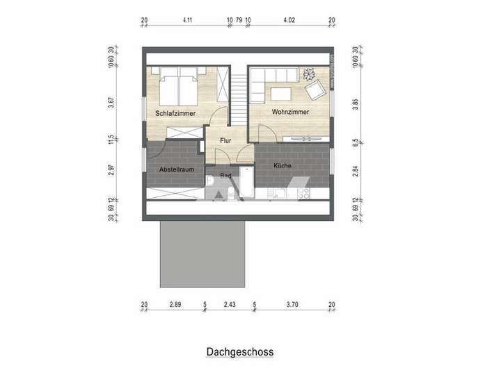 Die Obergeschosswohnung ist zurzeit für 3.600 EUR p. a. fest an solvente Mieter vermietet.