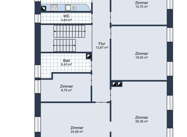- große 5-Zimmer-Wohnung mit Küche, Bad und separatem WC im Obergeschoss