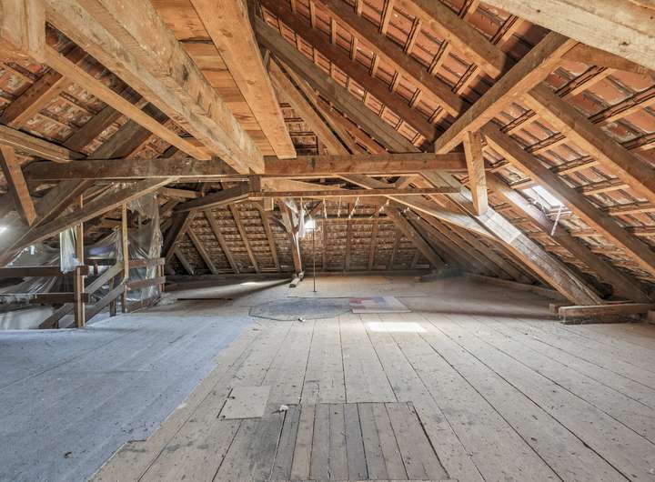 Das Gebäude ist vollständig unterkellert, was zusätzlichen Stauraum für Gewerbe oder private Nutzung bietet. Darüber hinaus wartet der weitläufige Dachboden auf seine neue Bestimmung – ob als zusätzliche Lagerfläche oder nach Ausbau als weiterer Wohnraum.