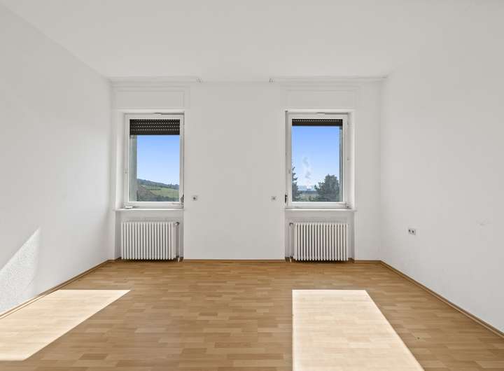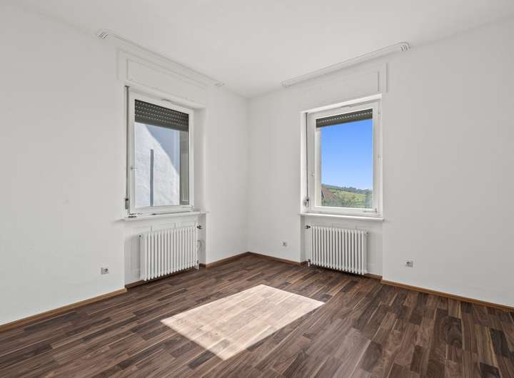 Das Obergeschoss beherbergt eine vollständig ausgebaute, großzügige 5-Zimmer-Wohnung, die nach einer Auffrischung bezugsfertig ist. Hohe Decken und helle Räume erzeugen ein angenehmes Wohngefühl, während der historische Charme des Gebäudes den Charakter unterstreicht. Traumhaft ist der Blick ins Tal!