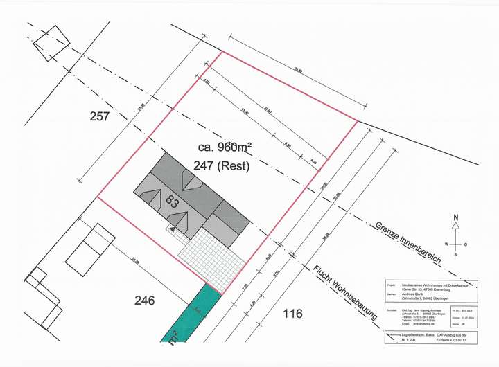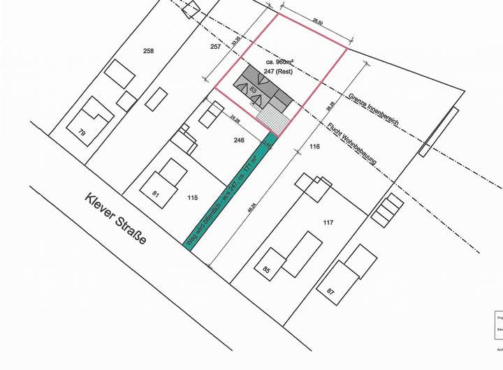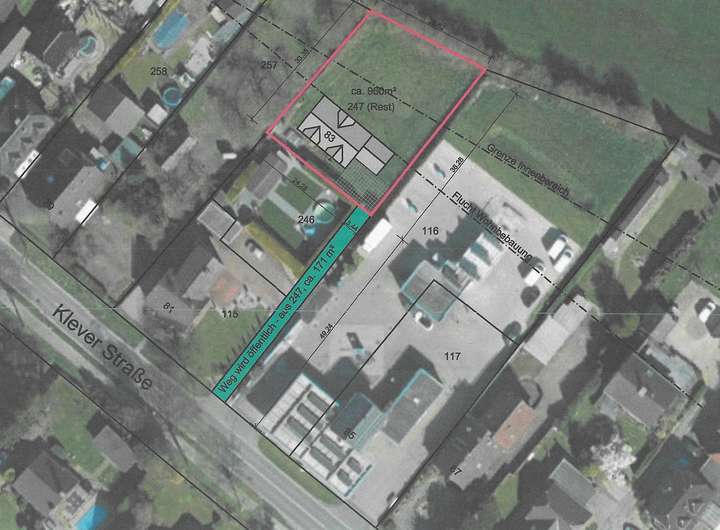 Schönes Baugrundstück mit Blick auf die Natur. Genehmigungen und evtl. Planung liegen vor. Das Grundstück misst 1131m2 und ist über einen, noch an die Gemeinde zu übertragenden Wegeanteil einen Städtischen Weg (171m2), erreichbar. Das reine Baugrundstück misst also 960m2. An der Hinterseite blickt man auf unverbaubares Land ( Wiese). Es darf ein Einfamilienhaus (mit evtl. Einliegerwohnung) und Doppelgarage gebaut werden. Maß: Haus ca 13 x 9M Maß: Doppel-Garage ca 6 x 6 M. Käufer ist verantwortlich für definitive Gestaltung/Planung des Hauses und die damit verbundene Genehmigungs- und sämtliche Erschließungskosten.