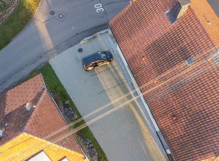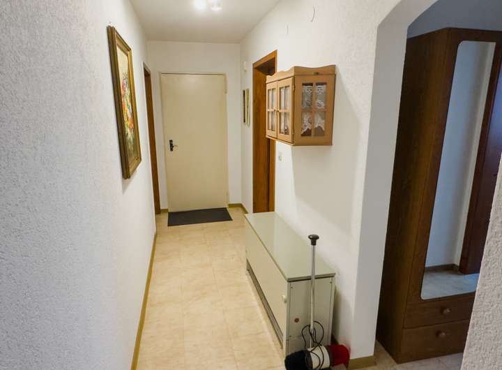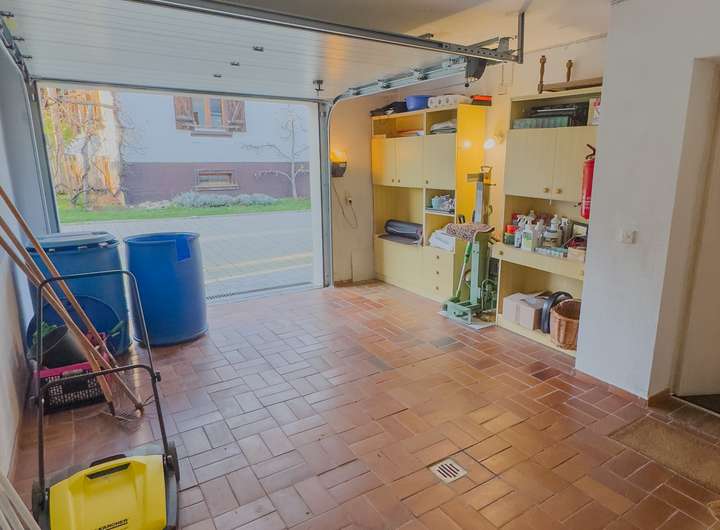 Zum Haus gehören zudem zwei integrierte Garagen, die direkt durch die Erdgeschosswohnung begehbar sind, eine separate Außengarage sowie mehrere Stellplätze auf dem Grundstück – eine ideale Lösung für Haushalte mit mehreren Fahrzeugen oder Gästen.