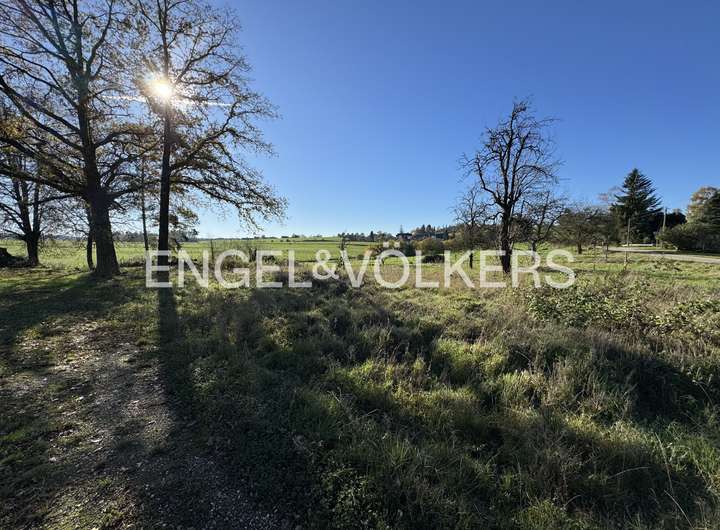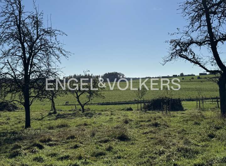 Für das Grundstück liegt eine Teilungsgenehmigung vor. Die Fläche des zur großen Wohnung gehörenden Trennstückes beträgt dann ca. 3.890 m² und enthält die Streuobst- und Blumenwiese, die des kleineren Trennstücks mit den beiden Wohnungen beläuft sich auf ca. 500 m².
