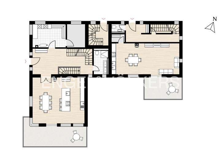 Die Eigentümerwohnung im Haus im Hauskonzept, mit eigenem Eingang, umfasst eine Wohnfläche von ca. 315 m² und erstreckt sich über drei Etagen, mit einem schönen Fernblick über die Felder nach Südwesten. Über einen separaten Eingang erreichen Sie zum einen die im Erdgeschoss und Obergeschoss befindliche Maisonettewohnung mit ca. 130 m² Wohnfläche und zum anderen die Dachgeschosswohnung mit ca. 56 m² Wohnfläche und einem großen Balkon. Die Aufteilung der Wohnungen kann auf den eigenen Bedarf oder die optimale Vermietbarkeit angepasst werden.