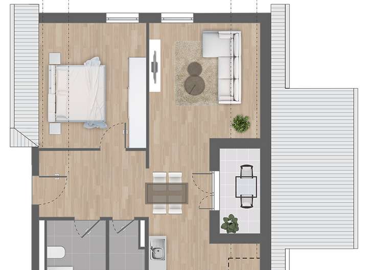 *Küchenaktion: Bei Kauf einer 1- bis 2-Zimmer-Eigentumswohnung bis zum 31.03.2026 erhalten Sie eine Küche inklusive.