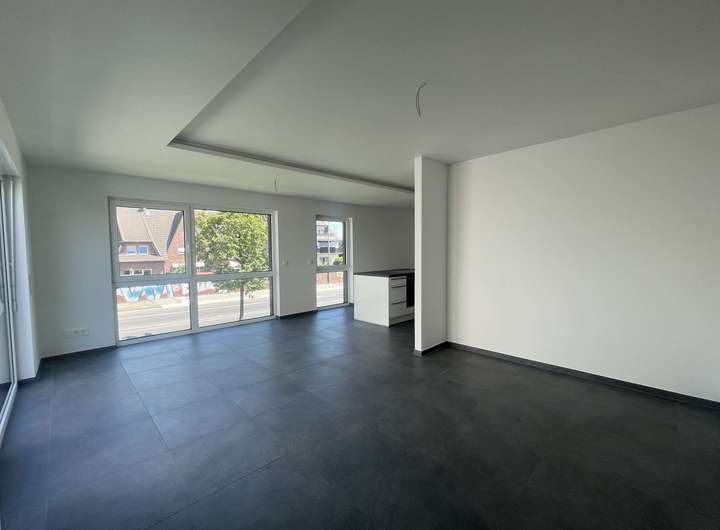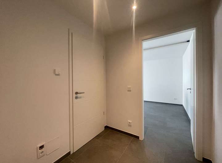Die gesamte Wohnung ist einheitlich mit hochwertigen Feinsteinzeugfliesen ausgestattet.