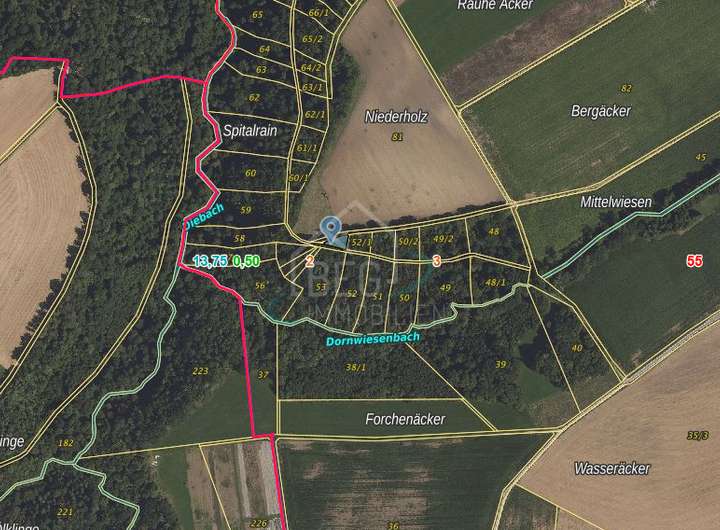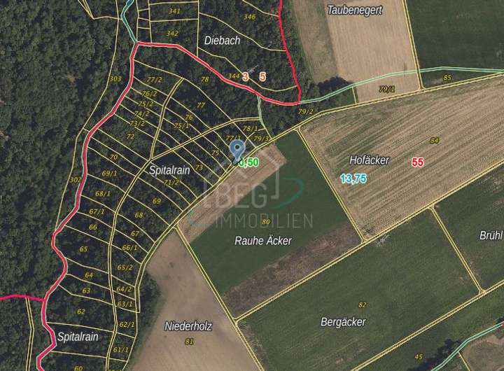 Die 13 Flurstücke der zum Verkauf stehenden Landwirtschafts- und Waldflächen sind in der Umgebung von Bühlerzimmern/Gemeinde Braunsbach. Die Flächen eignen sich zur haupt- und nebenerwerblichen Nutzung und Bewirtschaftung.