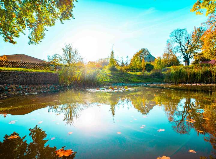 Großzügig und harmonisch fügt sich die Wohnanlage in die bestehende Angerdorfidylle ein, die von einem Dorfteich und einem kleinen Weiher am Fuße des Baugebietes gesäumt wird. Kubatur und Raumkonzept wurden so gewählt, dass der dörfliche Charakter erhalten bleibt und gleichzeitig moderne, lichtdurchflutete Innenräume mit durchdachten Grundrissen entstehen.