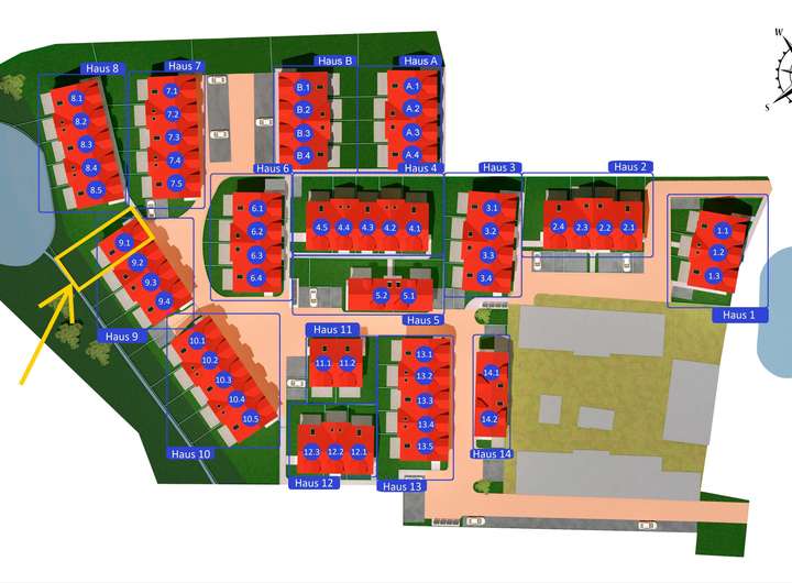 Auf über 13.000 m² Grundstücksfläche warten 61 familienfreundliche Wohneinheiten, davon 47 dreigeschossige Reihenhäuser in 3er-, 4er- und 5er-Reihen sowie 6 Doppelhaushälften auf ihre neuen Bewohner.