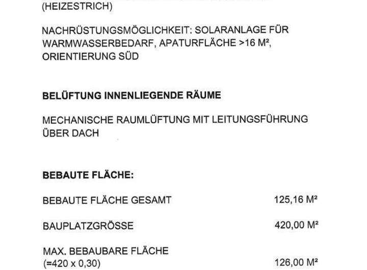 Bauplatzgröße 420 m2 (davon max. 126 m2 Bebaubare Fläche) -