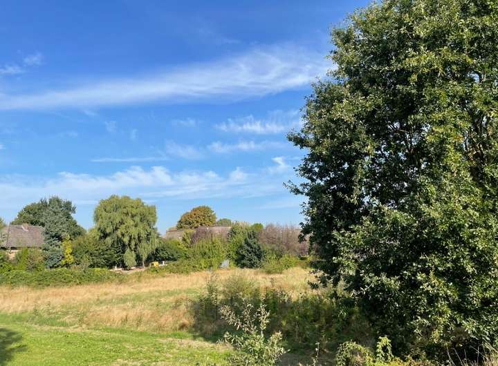 Es gilt der Bebauungsplan "5 Zwischen den Deichen", der eine GFZ von 0,3 festlegt, sodass Sie ein Einfamilienhaus oder ein Doppelhaus mit insgesamt ca. 360 m² Grundfläche eingeschossig errichten können. Die Anschlussmöglichkeit für den Kanal ist durch ein Leitungsrecht gesichert.