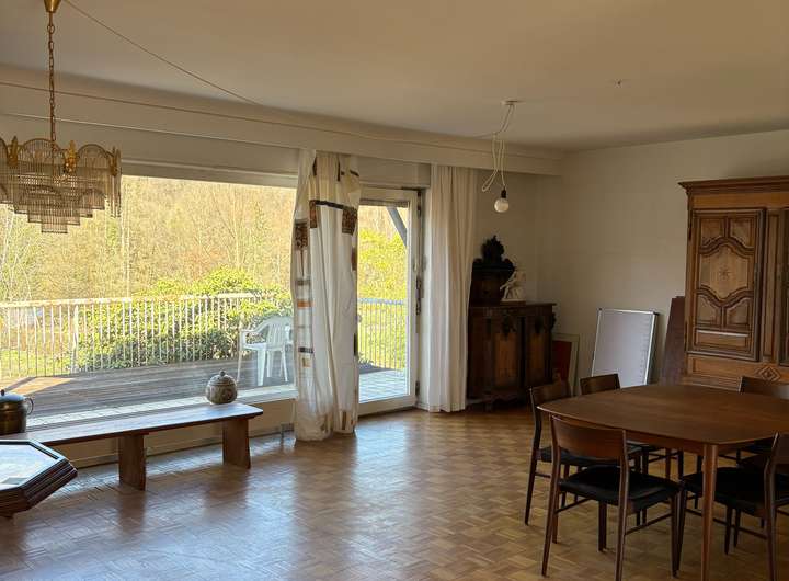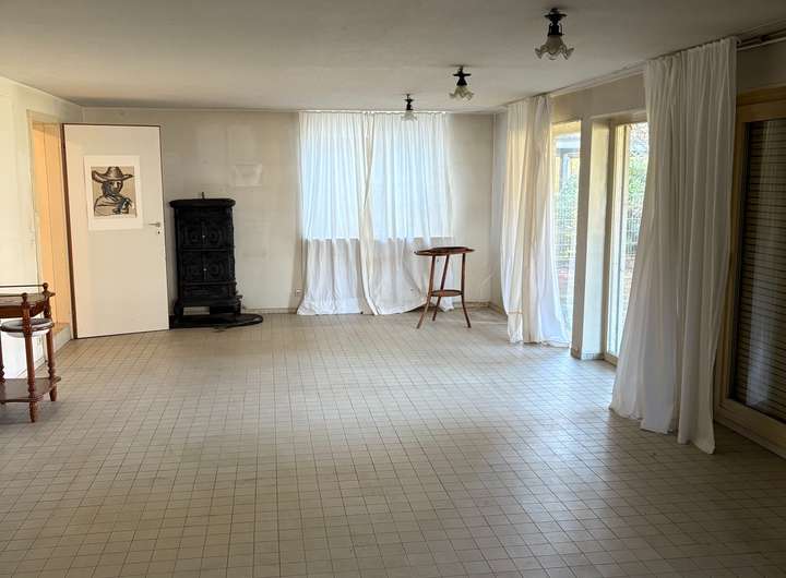 Im Souterrain befindet sich eine Einliegerwohnung mit Wohn- und Esszimmer mit direktem Zugang zum Garten, eine kleine Küche und Dusche und WC sowie der Heizungsraum.