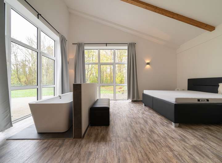 + Elternschlafzimmer mit freistehender Badewanne, Bad en Suite + Ankleidebereich