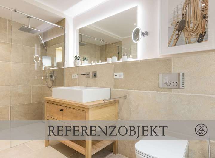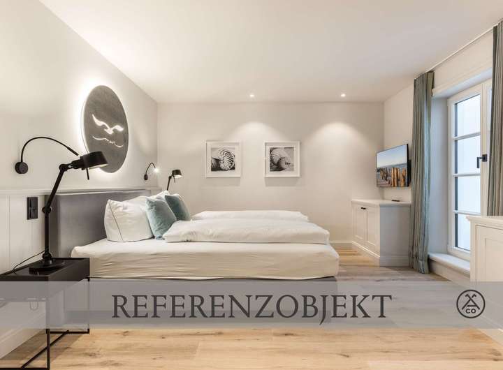 Die gezeigten Bilder stammen aus einem fertiggestellten Referenzobjekt. Die stilvolle Einrichtung und hochwertige Ausstattung wurden in Zusammenarbeit mit unserem Partner "Homestaging Sylt" realisiert. Gerne stellen wir den Kontakt her und unterstützen Sie auch bei der individuellen Gestaltung Ihrer neuen Immobilie.