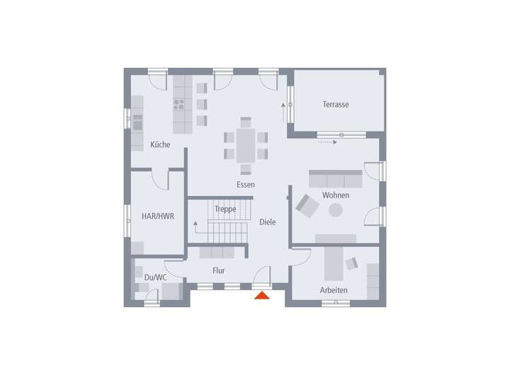 Dieser Architektenentwurf ist ein Planungsvorschlag und dient der Inspiration und Orientierung. Grundrisse, Architektur-Extras, Ausbau- und Effizienzhaus-Stufen werden individuell an Ihre Wünsche und Bedürfnisse angepasst.